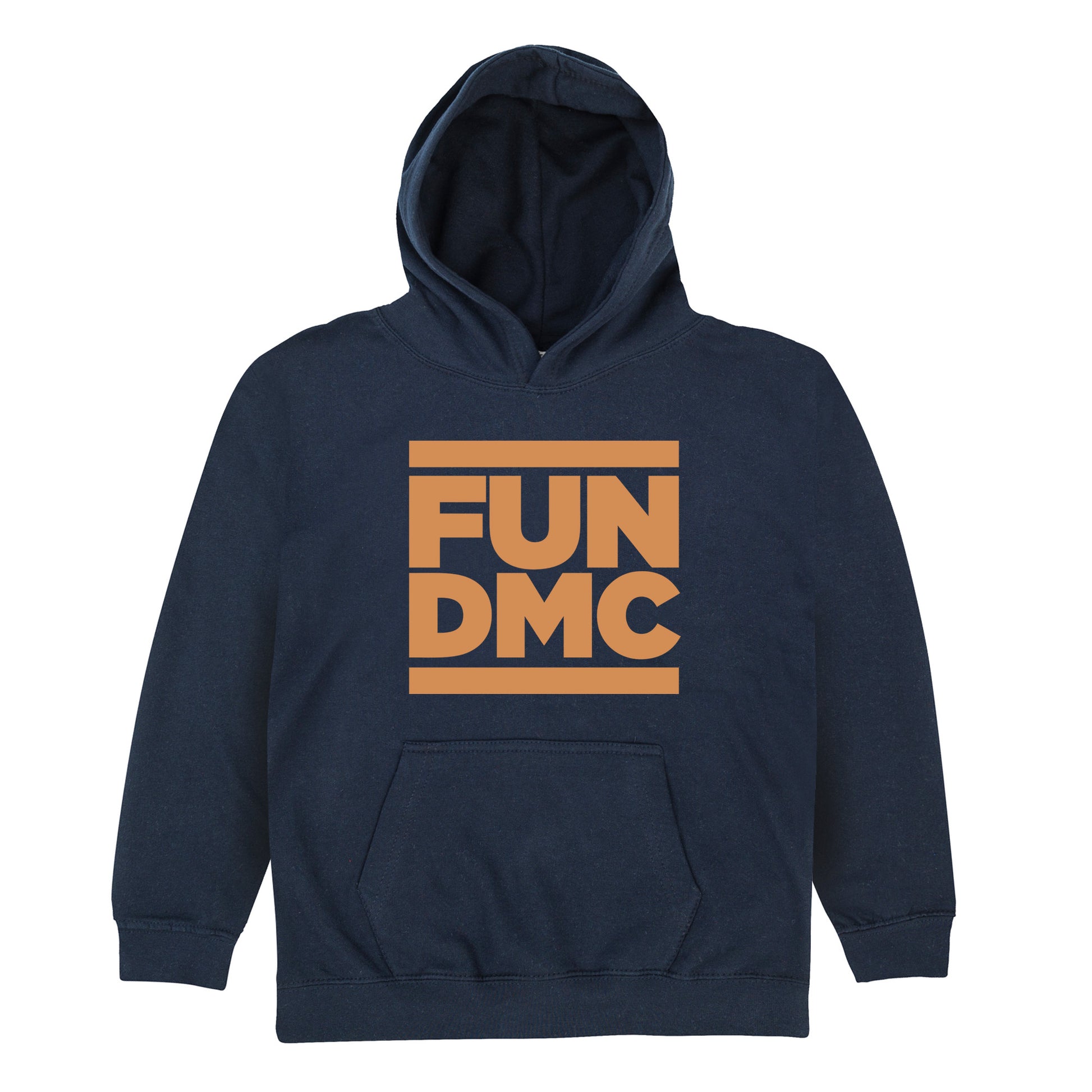 This FUN DMC Logo kids hoodie features a big print on the front.
