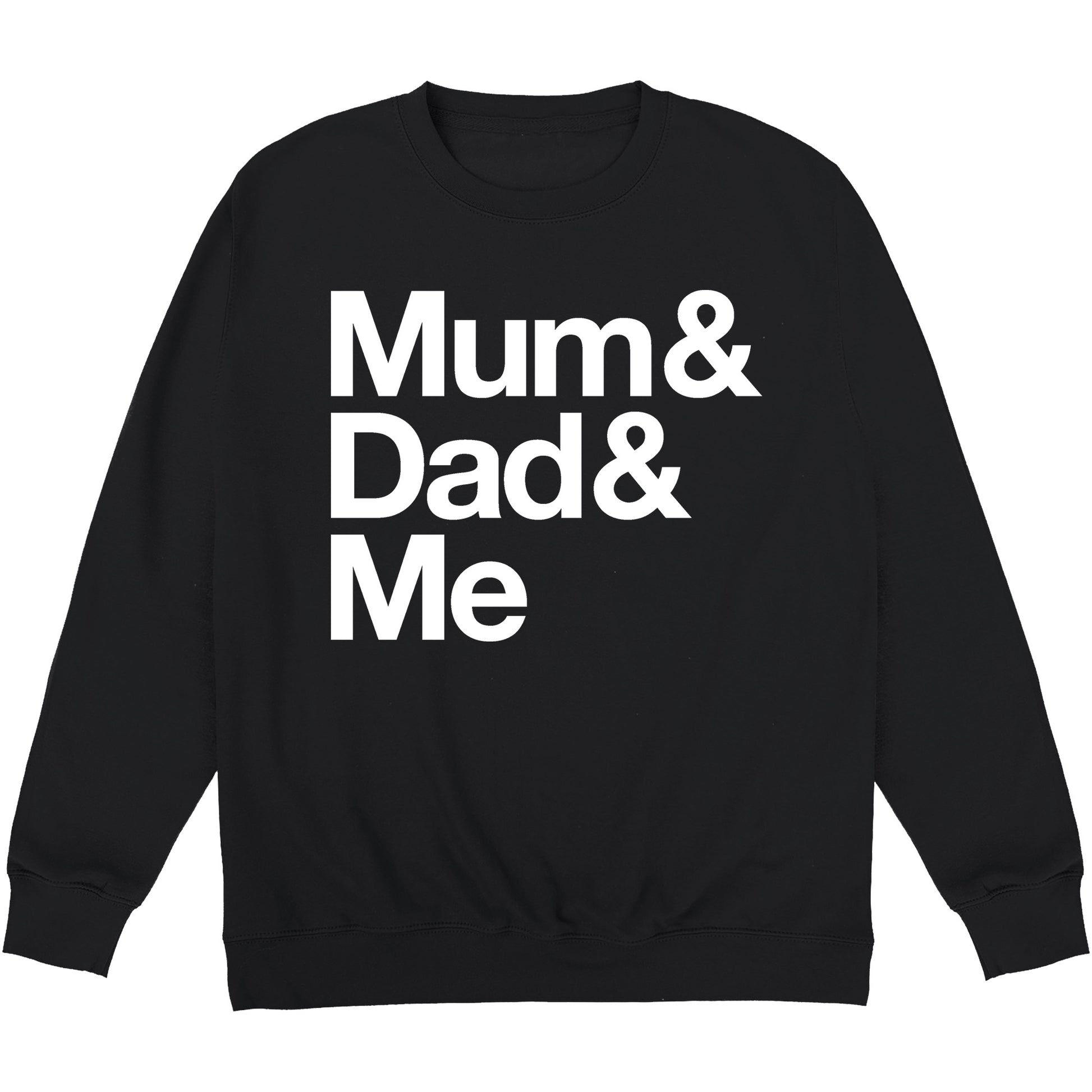This Mum & Dad & Me kids sweatshirt features a big print on the front.